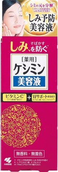 「薬用ケシミン美容液」は、肌の奥までしっかり浸透、メラニンの生成を抑え、しみ・そばかすを防ぐ薬用保湿・美容液です。シミ抑制成分(ビタミンC誘導体)と保湿Wサポート成分(アルピニアホワイト+ヒアルロン酸)を配合。シミを防ぎながら、潤いを補給。