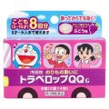 お出かけ前の予防として、また気分が悪くなったときでも水なしですぐに服用できるドロップタイプ。ぶどうの味で、にがいお薬が苦手なお子様も服用できます。ドラえもんを採用したかわいいパッケージで、みなさまの楽しい旅行を快適なものにします。5才から服用できます。