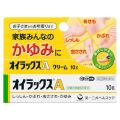 【製品名】 【指定第2類医薬品】オイラックスA 【内容量】 10g 【使用上の注意】 ●してはいけないこと 1.次の部位には使用しないで下さい。 水痘(水ぼうそう)、みずむし・たむし等又は化膿している患部 2.顔面には、広範囲に使用しないで下さい。 3.長期連用しないで下さい。 ●相談すること 次に該当する人はお申し出下さい。 (1)医師の治療を受けている人 (2)妊娠又は妊娠していると思われる人 (3)薬などによりアレルギー症状を起こしたことがある人 (4)患部が広範囲の人 (5)湿潤やただれのひどい人 【効能・効果】 かゆみ、かぶれ、しっしん、虫さされ、じんましん、しもやけ、皮膚炎、あせも 【用法・用量】 1日1~3回、適量を患部に塗布して下さい。 【成分 ・ 原材料】 100g 中 クロタミトン 10.0g、 ヒドロコルチゾン酢酸エステル 0.25g、 グリチルレチン酸0.5g、ジフェンヒドラミン塩酸塩 1.0g、 アラントイン 0.2g、 イソプロピルメチルフェノール 0.1g 添加物:ステアリン酸マクロゴール、ステアリルアルコール、ワセリン、香料、グリセリン 【保管及び取り扱い上の注意】 (1)直射日光の当たらない涼しい所に密栓して保管して下さい。 (2)小児の手の届かない所に保管して下さい。 (3)他の容器に入れ替えないで下さい。 (誤用の原因になったり品質が変わります) (4)表示の使用期限を過ぎた製品は使用しないで下さい。 【この製品についてのお問合せ先】 第一三共ヘルスケア株式会社 「お客様相談室」 0120-337-336 受付時間/9:00-17:00(土、日、祝日を除く) 【販売元】 第一三共ヘルスケア 【広告文責】 株式会社スターネット |
