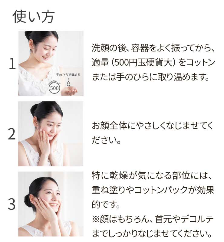 ・肌ダメージを修復する成分を配合し、肌のきめを整えスキンケアの土台を作ります。