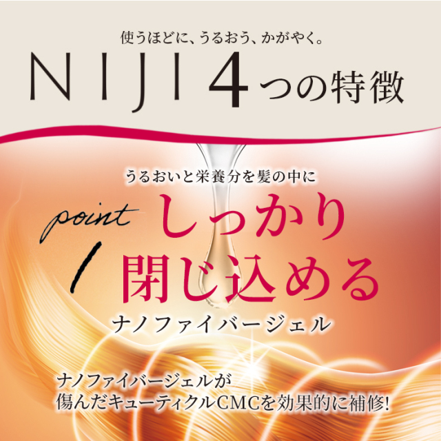 NIJIリズミックトリートメントとの併用で、ナノファイバージェルによる艶髪実感がUP!